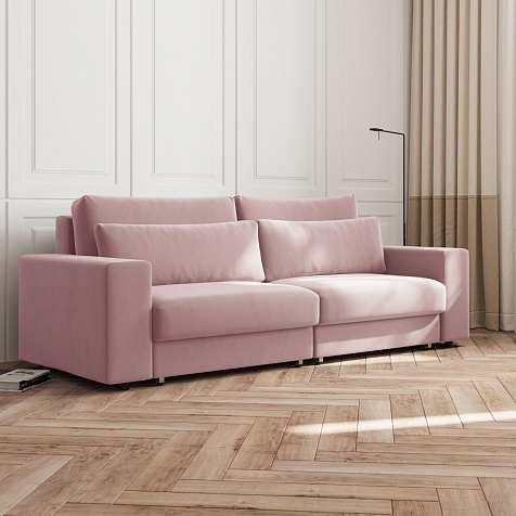 Дизайн на 360 градусов. Благодаря спинке в основной обивочной ткани, диван можно поставить вплотную к стене или посреди комнаты для зонирования пространства.