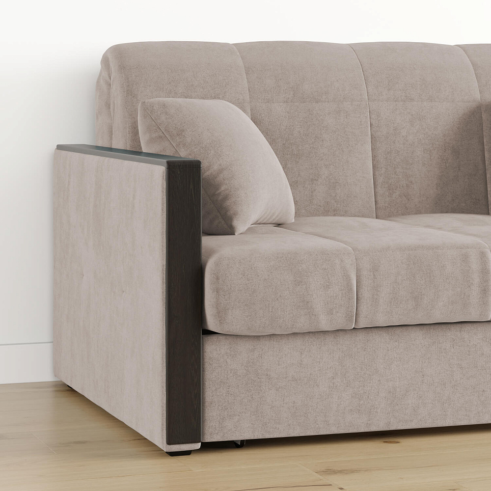 Механизм трансформации «Аккордеон». Чтобы разложить диван, необходимо приподнять сиденье и слегка потянуть на себя, далее диван разложится сам. Поверхность спального места ровная, без петель и швов, поэтому сон будет приятным и комфортным. Прорезиненные ролики защитят напольное покрытие от истирания.