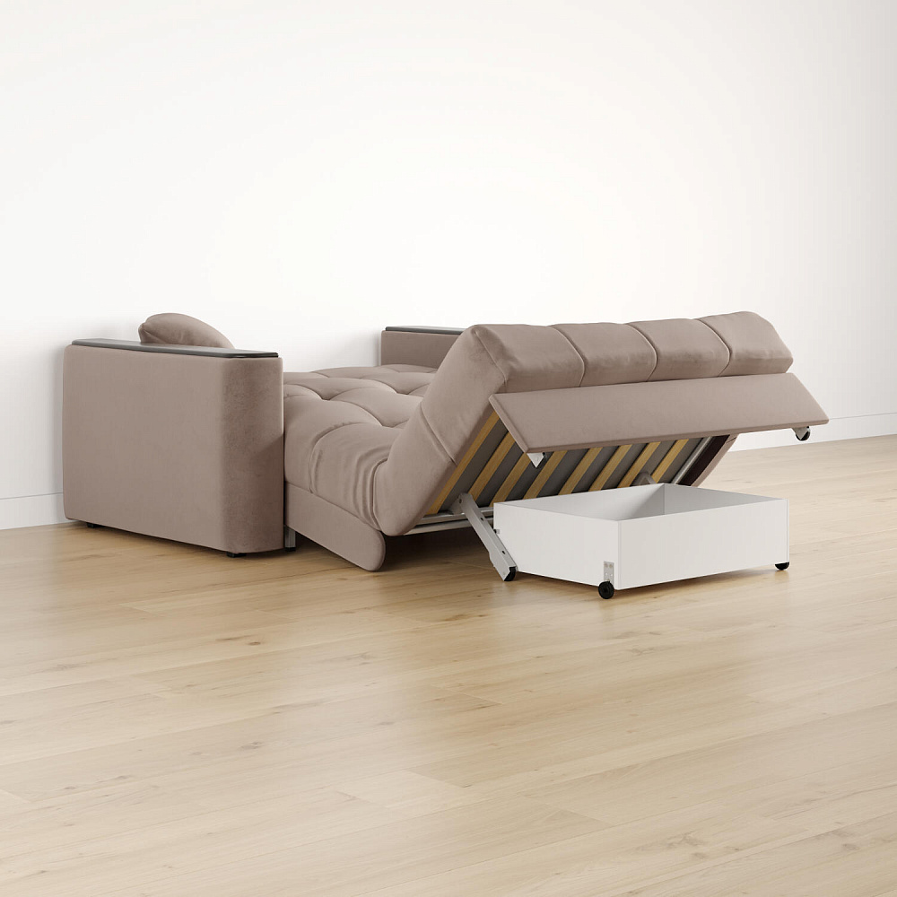- Механизм трансформации «Аккордеон». Надёжный и простой в использовании механизм. Приподнимите сиденье и слегка потяните на себя, диван сам разложится.