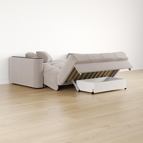 - Механизм трансформации «Аккордеон». Надёжный и простой в использовании механизм. Приподнимите сиденье и слегка потяните на себя, диван сам разложится.