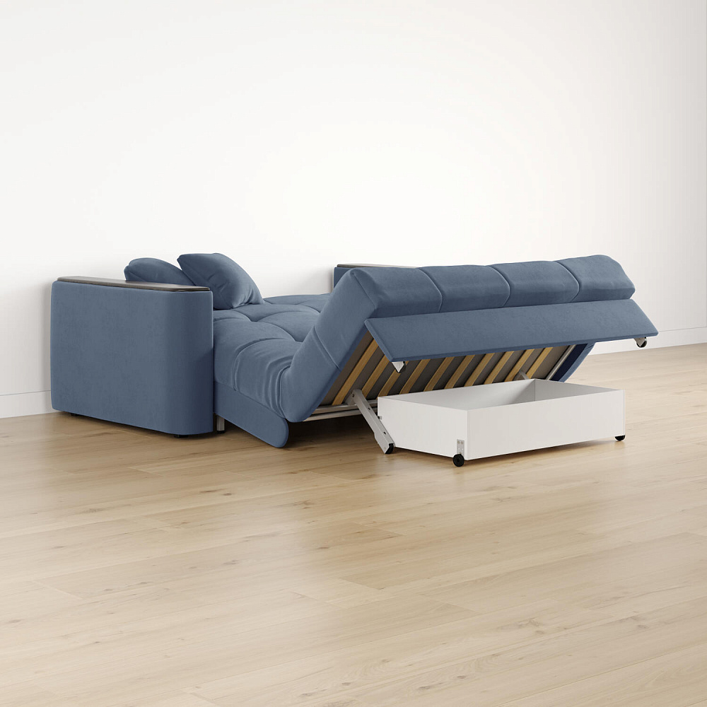 - Размер спального места — 127 х 200 см. Полноценная кровать подойдёт для комфортного сна на каждый день.