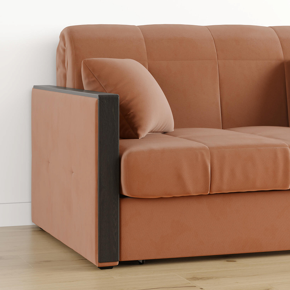 Механизм трансформации «Аккордеон». Чтобы разложить диван, необходимо приподнять сиденье и слегка потянуть на себя, далее диван разложится сам. Поверхность спального места ровная, без петель и швов, поэтому сон будет приятным и комфортным. Прорезиненные ролики защитят напольное покрытие от истирания.