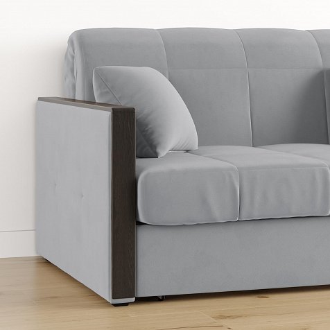 Механизм трансформации «Аккордеон». Чтобы разложить диван, необходимо приподнять сиденье и слегка потянуть на себя, далее диван разложится сам. Поверхность спального места ровная, без петель и швов, поэтому сон будет приятным и комфортным. Прорезиненные ролики защитят напольное покрытие от истирания.