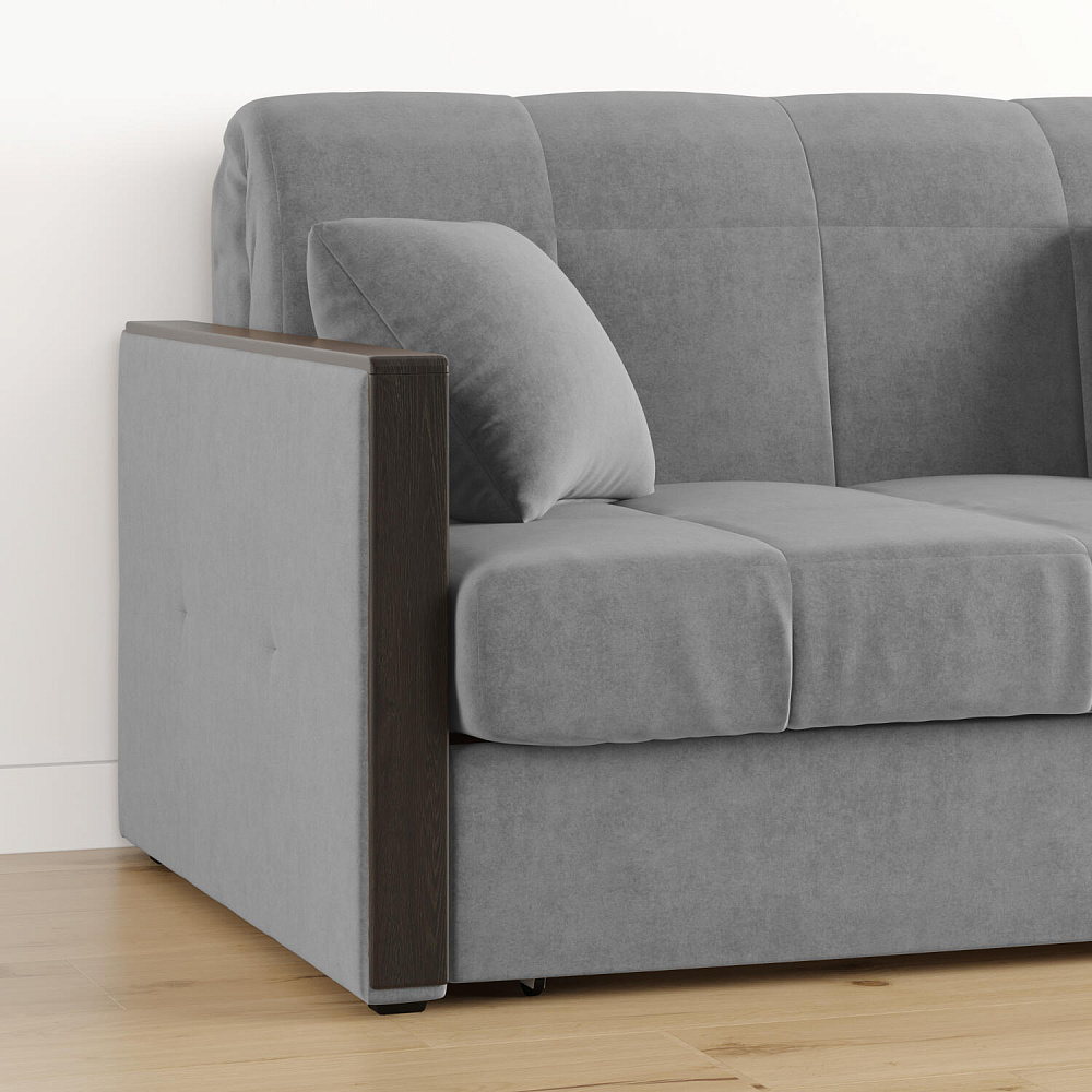 Механизм трансформации «Аккордеон». Чтобы разложить диван, необходимо приподнять сиденье и слегка потянуть на себя, далее диван разложится сам. Поверхность спального места ровная, без петель и швов, поэтому сон будет приятным и комфортным. Прорезиненные ролики защитят напольное покрытие от истирания.