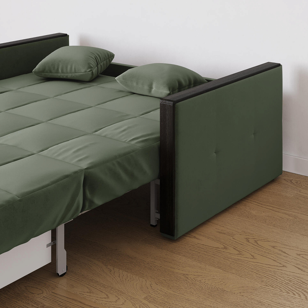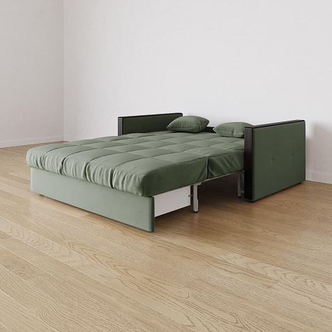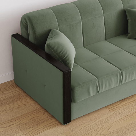 Механизм трансформации «Аккордеон». Чтобы разложить диван, необходимо приподнять сиденье и слегка потянуть на себя, далее диван разложится сам. Поверхность спального места ровная, без петель и швов, поэтому сон будет приятным и комфортным. Прорезиненные ролики защитят напольное покрытие от истирания.