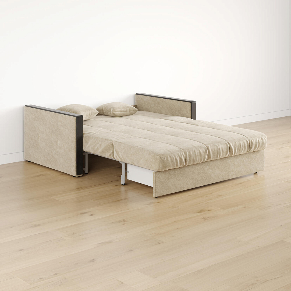 Механизм трансформации «Аккордеон». Чтобы разложить диван, необходимо приподнять сиденье и слегка потянуть на себя, далее диван разложится сам. Поверхность спального места ровная, без петель и швов, поэтому сон будет приятным и комфортным. Прорезиненные ролики защитят напольное покрытие от истирания.