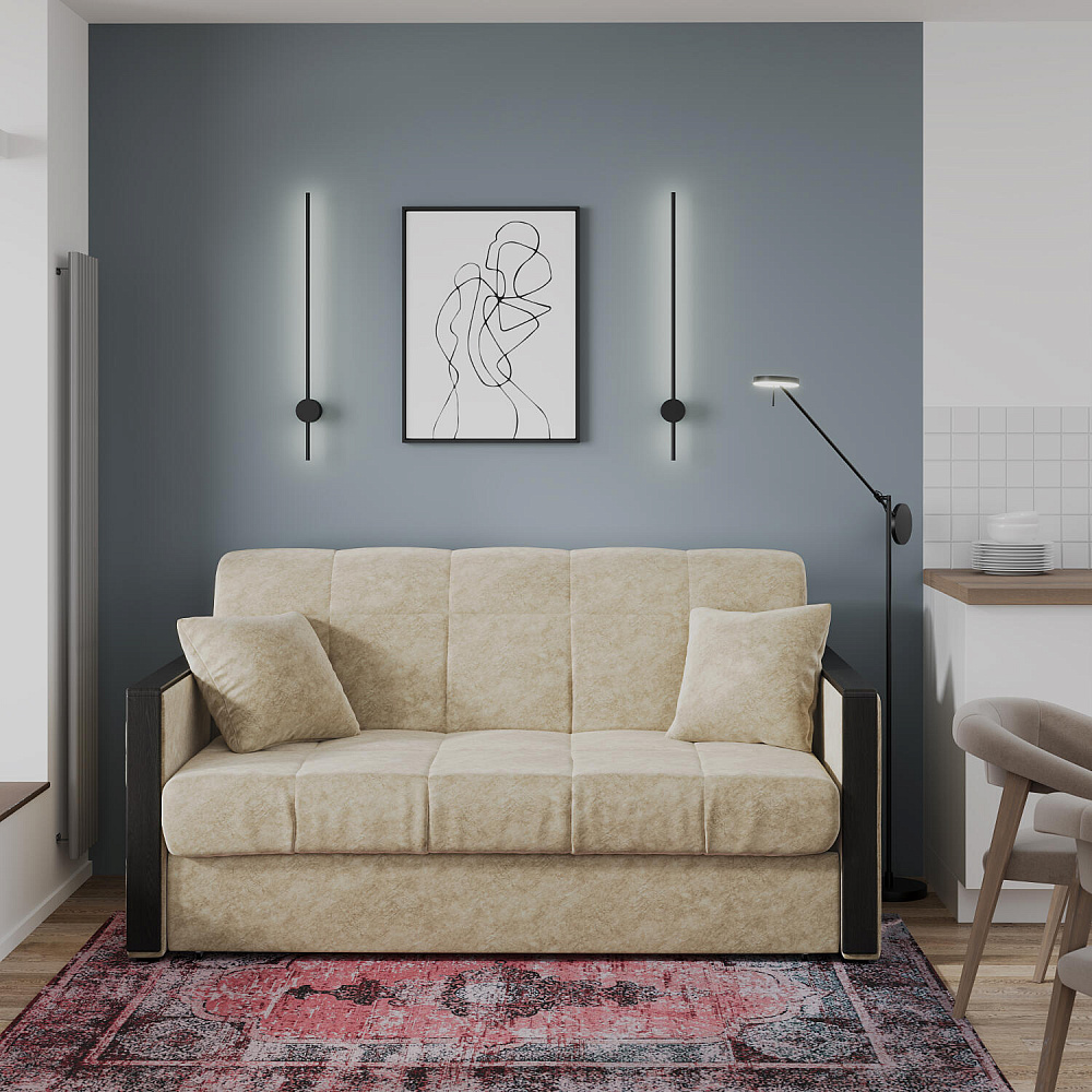 Диван «Бристоль» — идеальное место для отдыха и комфортного сна. Модель оснащена накладками на подлокотниках, на которые удобно положить ТВ-пульт или смартфон. Благодаря механизму трансформации «Аккордеон» диван легко превращается в полноценную кровать для одного-двух человек. Пропорциональные формы, плавные линии декоративного канта подчеркивают лаконичный дизайн, поэтому диван подойдет для любого современного интерьера.