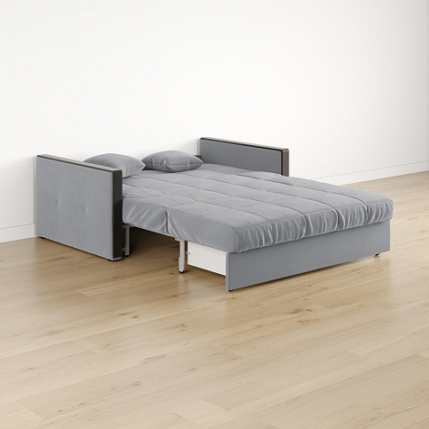 Размер спального места — 147 х 200 см. Диван легко трансформируется в двуспальную кровать, на которой смогут расположиться и с комфортом выспаться один-два человека.
