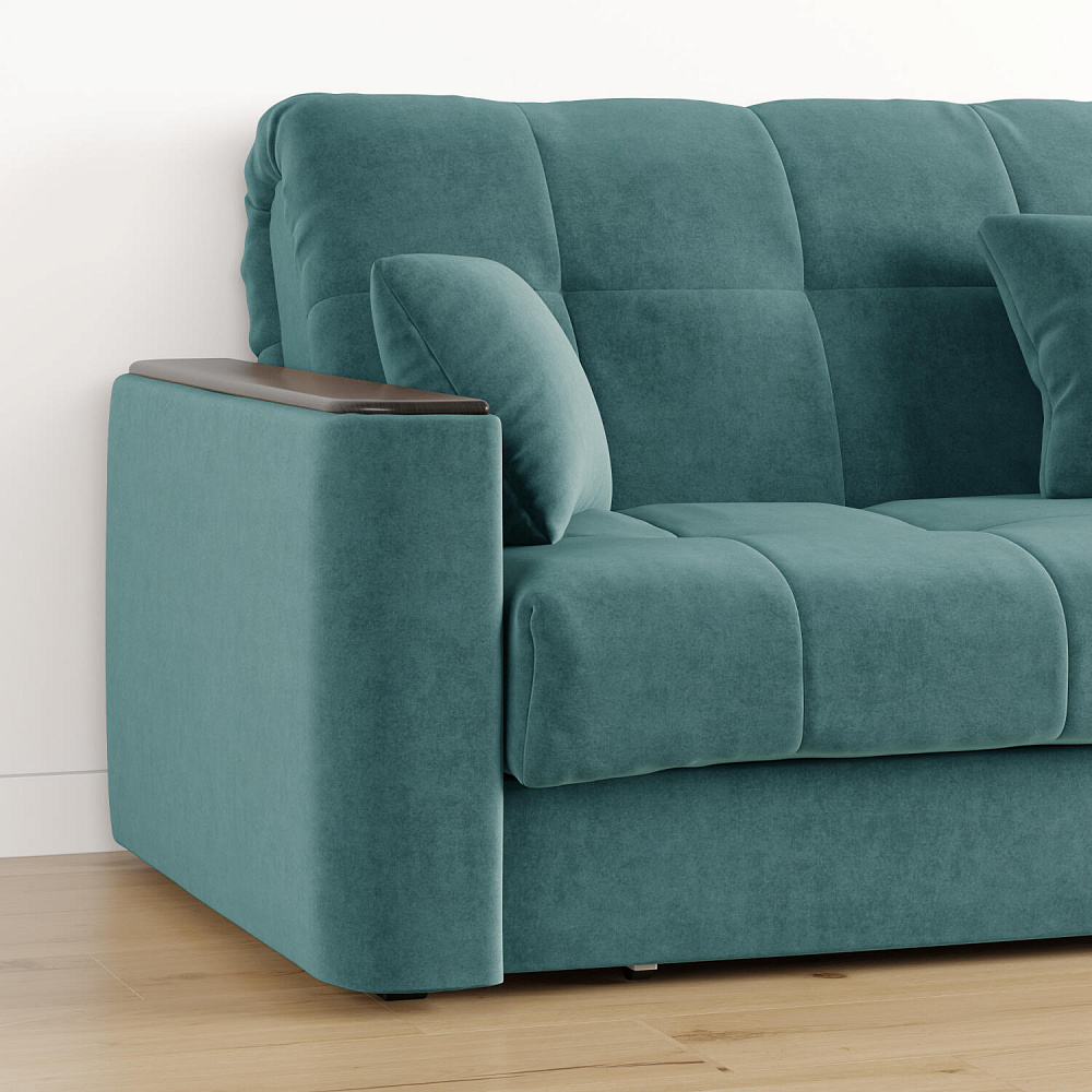 - Обивка из велюра. Обивка дивана выполнена из стильной и приятной на ощупь ткани, которая отлично пропускает воздух, хорошо тянется, устойчива к истиранию и выцветанию.
