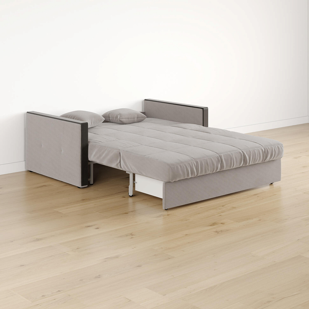 Размер спального места — 147 х 200 см. Диван легко трансформируется в двуспальную кровать, на которой смогут расположиться и с комфортом выспаться один-два человека.