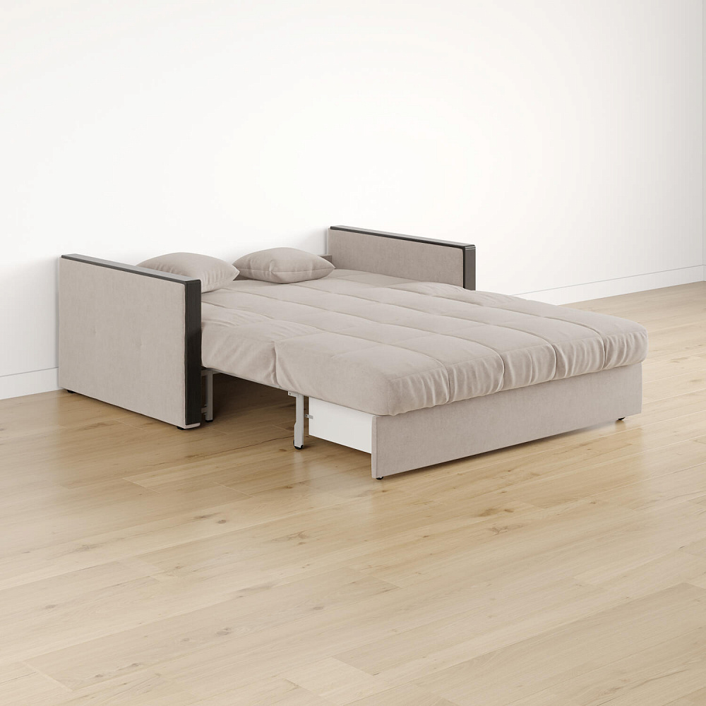 Размер спального места — 147 х 200 см. Диван легко трансформируется в двуспальную кровать, на которой смогут расположиться и с комфортом выспаться один-два человека.