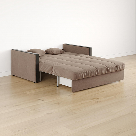 Размер спального места — 147 х 200 см. Диван легко трансформируется в двуспальную кровать, на которой смогут расположиться и с комфортом выспаться один-два человека.