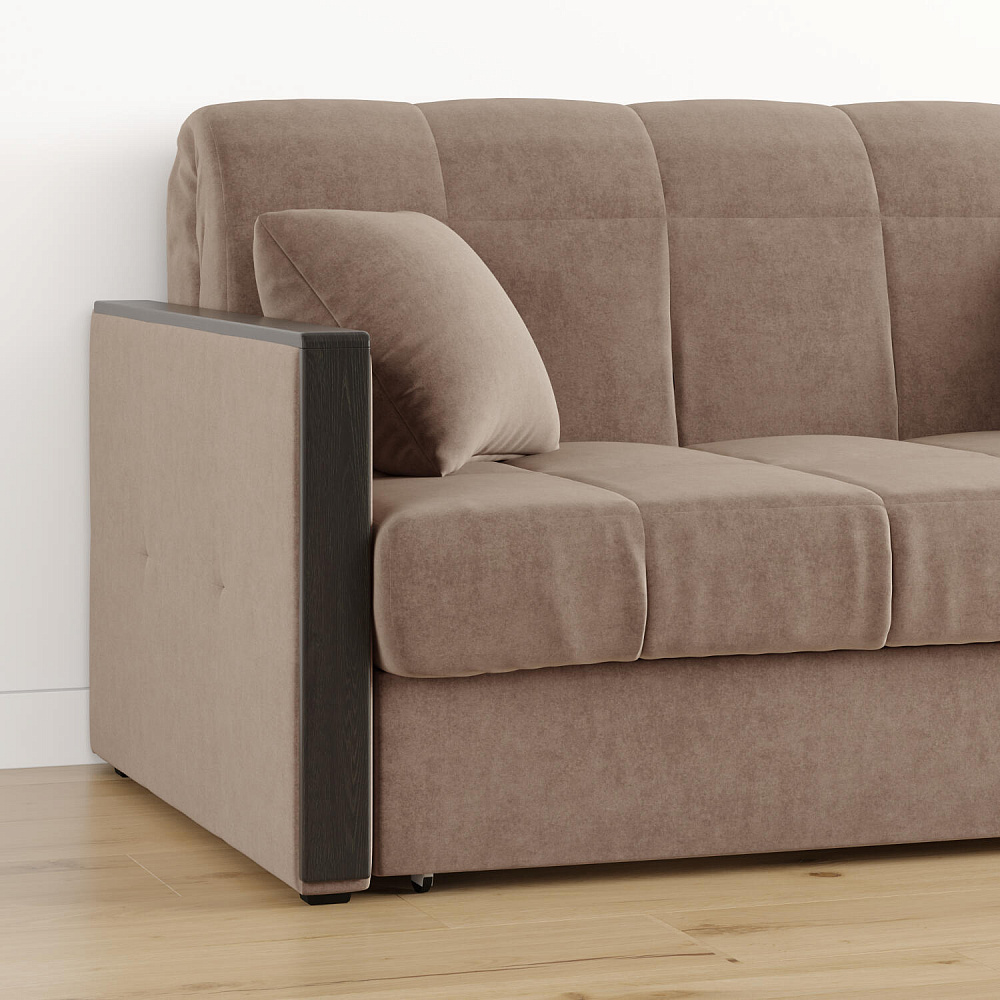 Диван «Бристоль» — идеальное место для отдыха и комфортного сна. Модель оснащена накладками на подлокотниках, на которые удобно положить ТВ-пульт или смартфон. Благодаря механизму трансформации «Аккордеон» диван легко превращается в полноценную кровать для одного-двух человек. Пропорциональные формы, плавные линии декоративного канта подчеркивают лаконичный дизайн, поэтому диван подойдет для любого современного интерьера.
