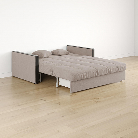 Механизм трансформации «Аккордеон». Чтобы разложить диван, необходимо приподнять сиденье и слегка потянуть на себя, далее диван разложится сам. Поверхность спального места ровная, без петель и швов, поэтому сон будет приятным и комфортным. Прорезиненные ролики защитят напольное покрытие от истирания.