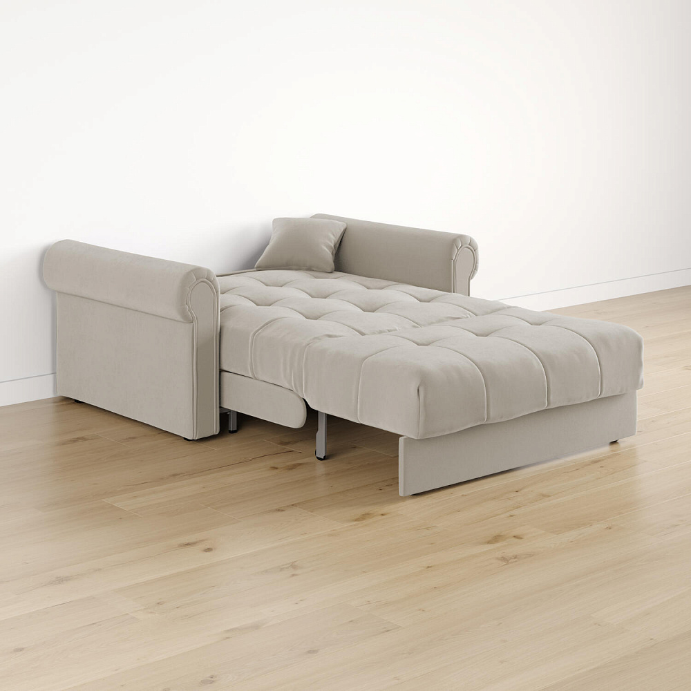 - Размер спального места — 127 х 204 см. Полноценная кровать подойдёт для комфортного сна на каждый день.