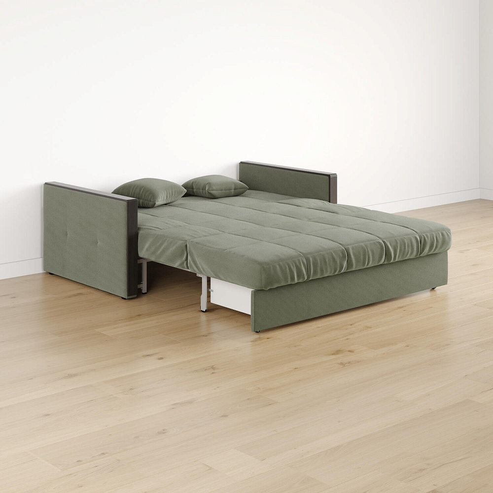 Размер спального места — 162 х 200 см. Диван легко трансформируется в двуспальную кровать, на которой смогут расположиться и с комфортом выспаться два человека.