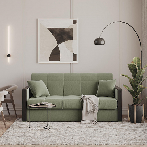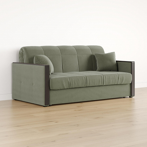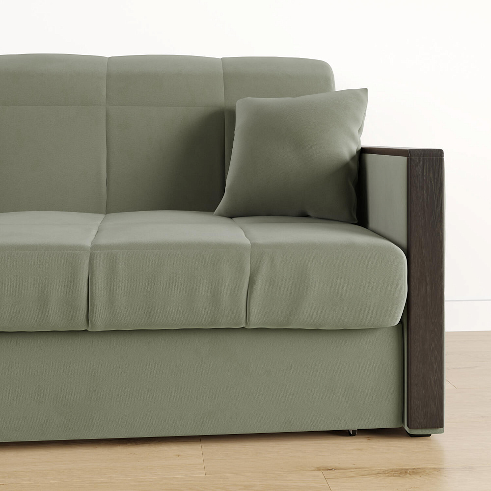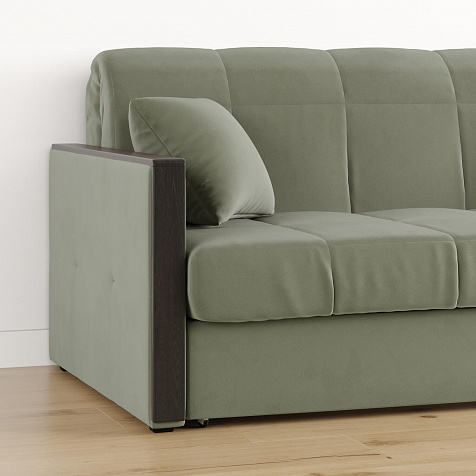 Механизм трансформации «Аккордеон». Чтобы разложить диван, необходимо приподнять сиденье и слегка потянуть на себя, далее диван разложится сам. Поверхность спального места ровная, без петель и швов, поэтому сон будет приятным и комфортным. Прорезиненные ролики защитят напольное покрытие от истирания.