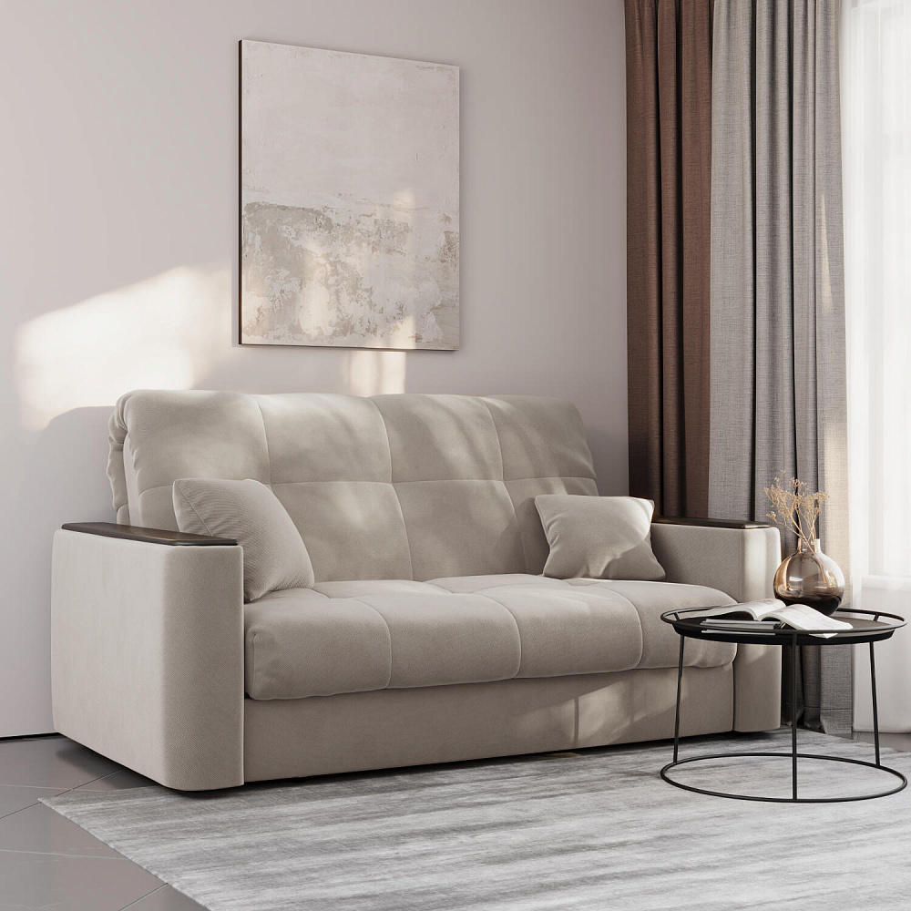 Диван «Камелот» — лучшее сочетание удобства, компактности и функциональности в классическом стиле. Модель в лаконичном дизайне поможет оформить уютную и удобную зону для сна и отдыха в небольших гостиных, спальнях или детских комнатах. Изюминкой модели являются деревянные накладки на подлокотниках, на которых можно разместить пульт от телевизора или чашку чая. Диван создаст в комнате комфортную обстановку и придаст ей неповторимый вид.