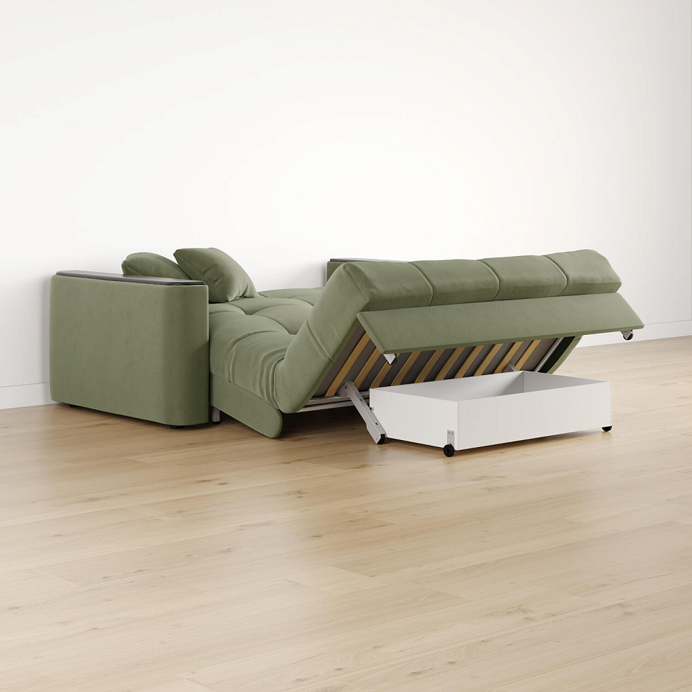 - Механизм трансформации «Аккордеон». Надёжный и простой в использовании механизм. Приподнимите сиденье и слегка потяните на себя, диван сам разложится.