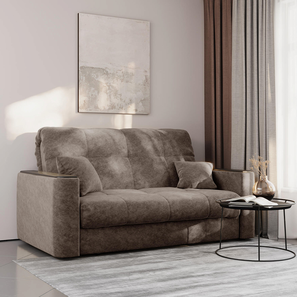 Диван «Камелот» — лучшее сочетание удобства, компактности и функциональности в классическом стиле. Модель в лаконичном дизайне поможет оформить уютную и удобную зону для сна и отдыха в небольших гостиных, спальнях или детских комнатах. Изюминкой модели являются деревянные накладки на подлокотниках, на которых можно разместить пульт от телевизора или чашку чая. Диван создаст в комнате комфортную обстановку и придаст ей неповторимый вид.