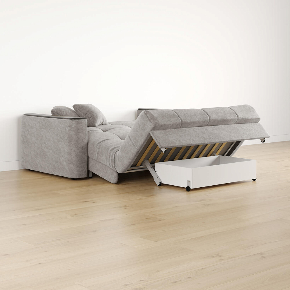 - Механизм трансформации «Аккордеон». Надёжный и простой в использовании механизм. Приподнимите сиденье и слегка потяните на себя, диван сам разложится.