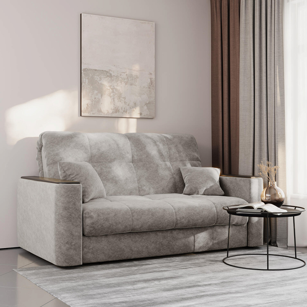Диван «Камелот» — лучшее сочетание удобства, компактности и функциональности в классическом стиле. Модель в лаконичном дизайне поможет оформить уютную и удобную зону для сна и отдыха в небольших гостиных, спальнях или детских комнатах. Изюминкой модели являются деревянные накладки на подлокотниках, на которых можно разместить пульт от телевизора или чашку чая. Диван создаст в комнате комфортную обстановку и придаст ей неповторимый вид.