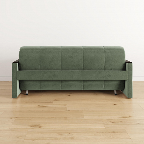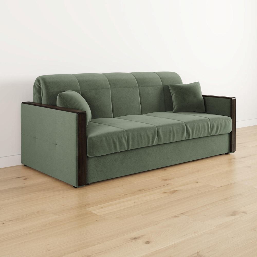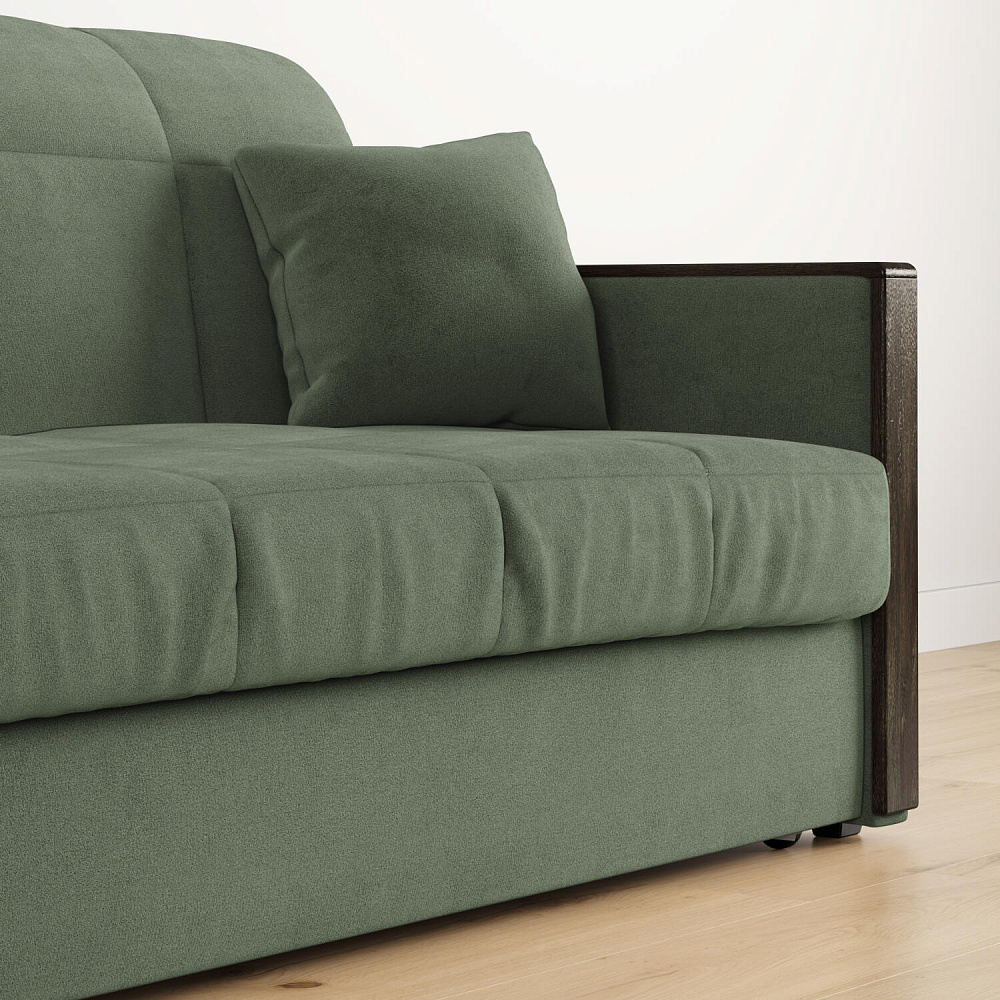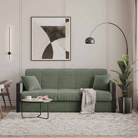 Механизм трансформации «Аккордеон». Чтобы разложить диван, необходимо приподнять сиденье и слегка потянуть на себя, далее диван разложится сам. Поверхность спального места ровная, без петель и швов, поэтому сон будет приятным и комфортным. Прорезиненные ролики защитят напольное покрытие от истирания.