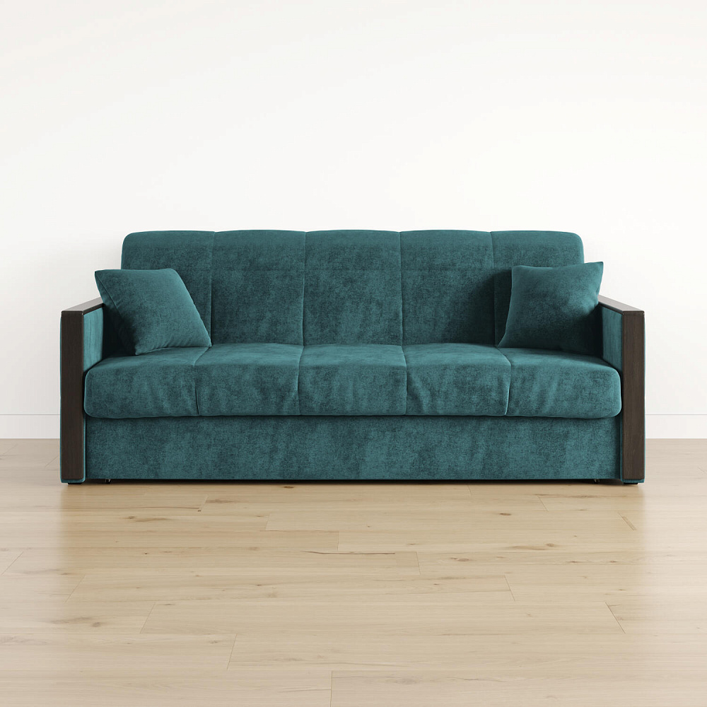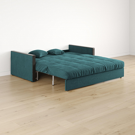 Механизм трансформации «Аккордеон». Чтобы разложить диван, необходимо приподнять сиденье и слегка потянуть на себя, далее диван разложится сам. Поверхность спального места ровная, без петель и швов, поэтому сон будет приятным и комфортным. Прорезиненные ролики защитят напольное покрытие от истирания.