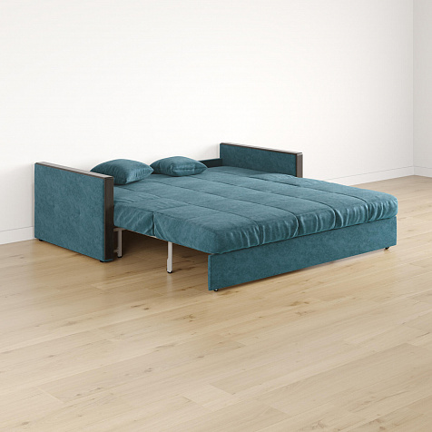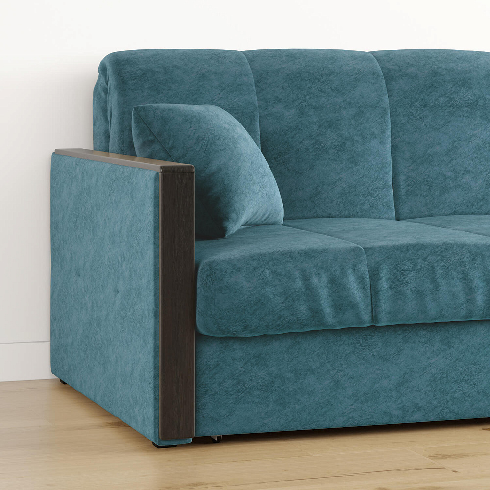 Механизм трансформации «Аккордеон». Чтобы разложить диван, необходимо приподнять сиденье и слегка потянуть на себя, далее диван разложится сам. Поверхность спального места ровная, без петель и швов, поэтому сон будет приятным и комфортным. Прорезиненные ролики защитят напольное покрытие от истирания.