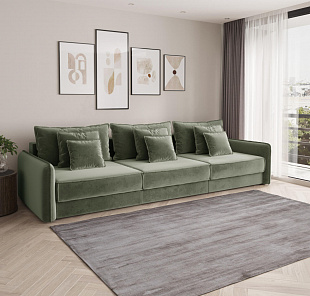 Механизм трансформации «Аккордеон». Чтобы разложить диван, необходимо приподнять сиденье и слегка потянуть на себя, далее диван разложится сам. Поверхность спального места ровная, без петель и швов, поэтому сон будет приятным и комфортным. Прорезиненные ролики защитят напольное покрытие от истирания.