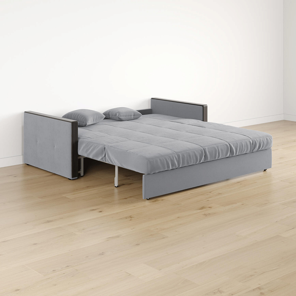 Механизм трансформации «Аккордеон». Чтобы разложить диван, необходимо приподнять сиденье и слегка потянуть на себя, далее диван разложится сам. Поверхность спального места ровная, без петель и швов, поэтому сон будет приятным и комфортным. Прорезиненные ролики защитят напольное покрытие от истирания.
