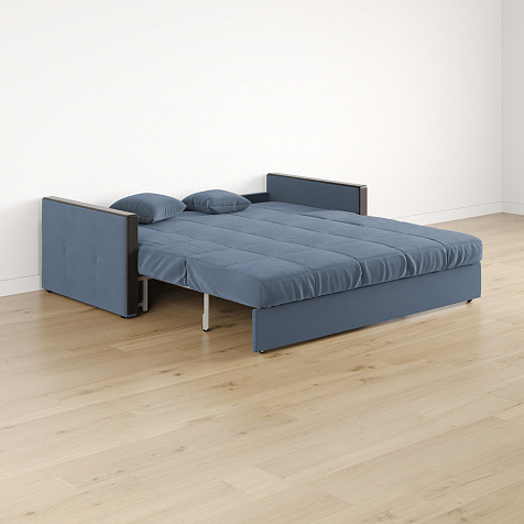Механизм трансформации «Аккордеон». Чтобы разложить диван, необходимо приподнять сиденье и слегка потянуть на себя, далее диван разложится сам. Поверхность спального места ровная, без петель и швов, поэтому сон будет приятным и комфортным. Прорезиненные ролики защитят напольное покрытие от истирания.