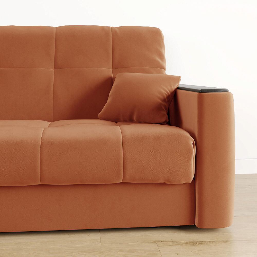 Диван «Камелот» — лучшее сочетание удобства, компактности и функциональности в классическом стиле. Модель в лаконичном дизайне поможет оформить уютную и удобную зону для сна и отдыха в небольших гостиных, спальнях или детских комнатах. Изюминкой модели являются деревянные накладки на подлокотниках, на которых можно разместить пульт от телевизора или чашку чая. Диван создаст в комнате комфортную обстановку и придаст ей неповторимый вид.