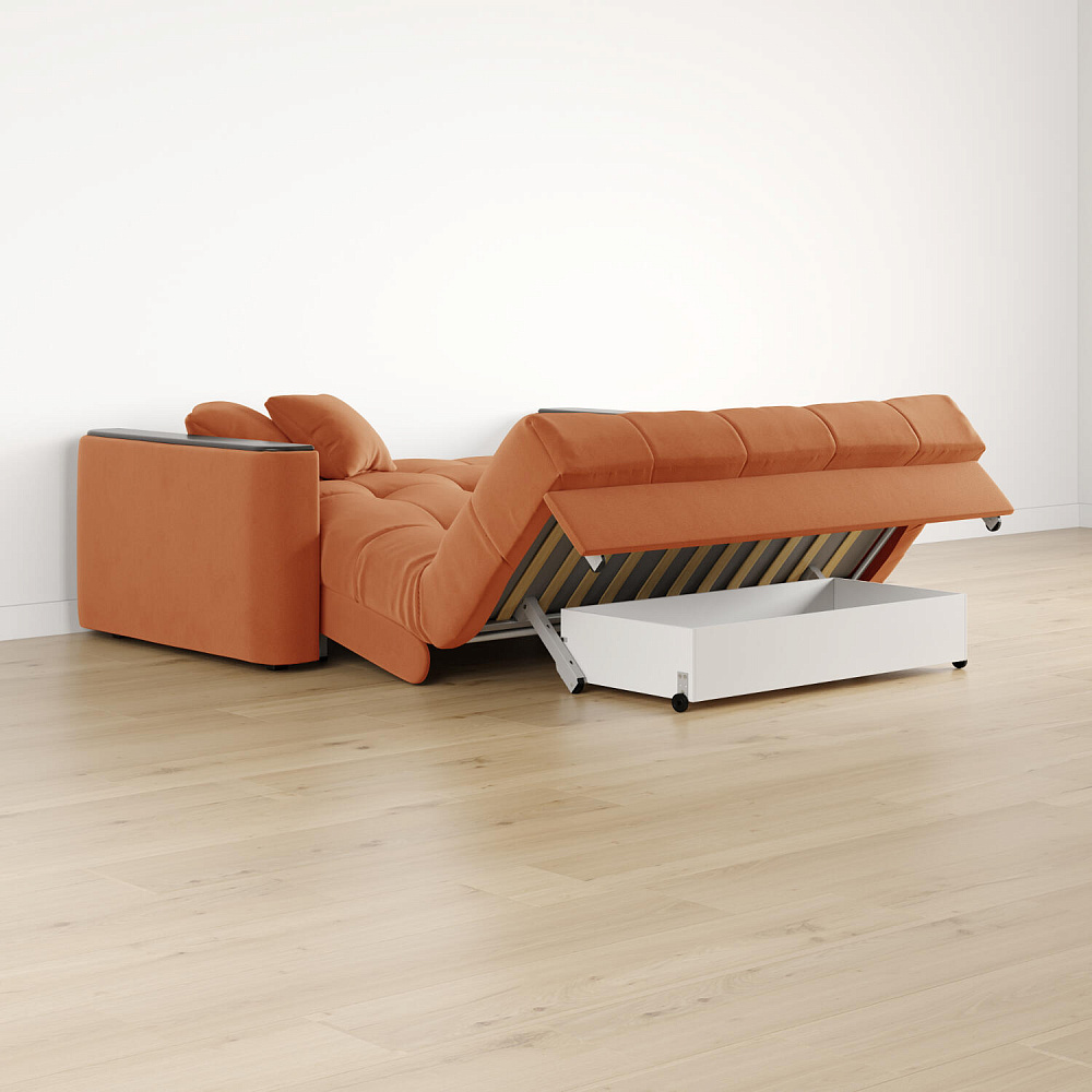 - Механизм трансформации «Аккордеон». Надёжный и простой в использовании механизм. Приподнимите сиденье и слегка потяните на себя, диван сам разложится.