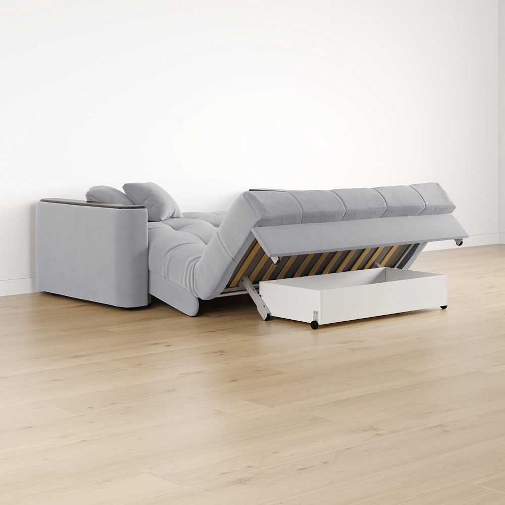 - Механизм трансформации «Аккордеон». Надёжный и простой в использовании механизм. Приподнимите сиденье и слегка потяните на себя, диван сам разложится.