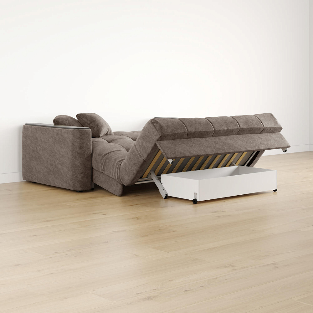 - Механизм трансформации «Аккордеон». Надёжный и простой в использовании механизм. Приподнимите сиденье и слегка потяните на себя, диван сам разложится.
