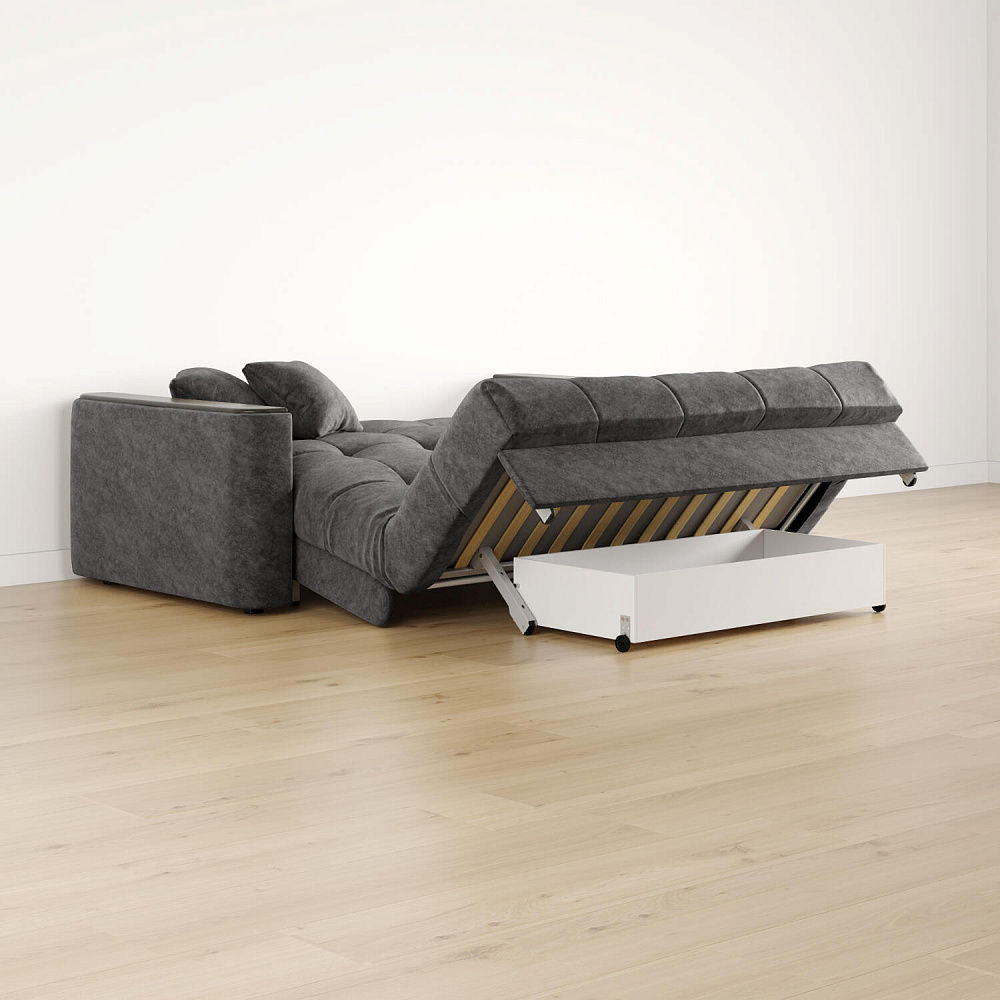 - Механизм трансформации «Аккордеон». Надёжный и простой в использовании механизм. Приподнимите сиденье и слегка потяните на себя, диван сам разложится.