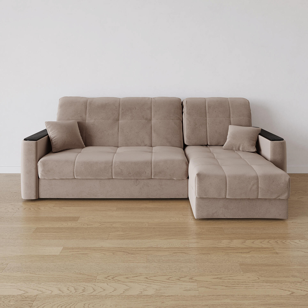 - Универсальный угол. Диван подстроится под условия помещения — оттоманка устанавливается как слева, так и справа.