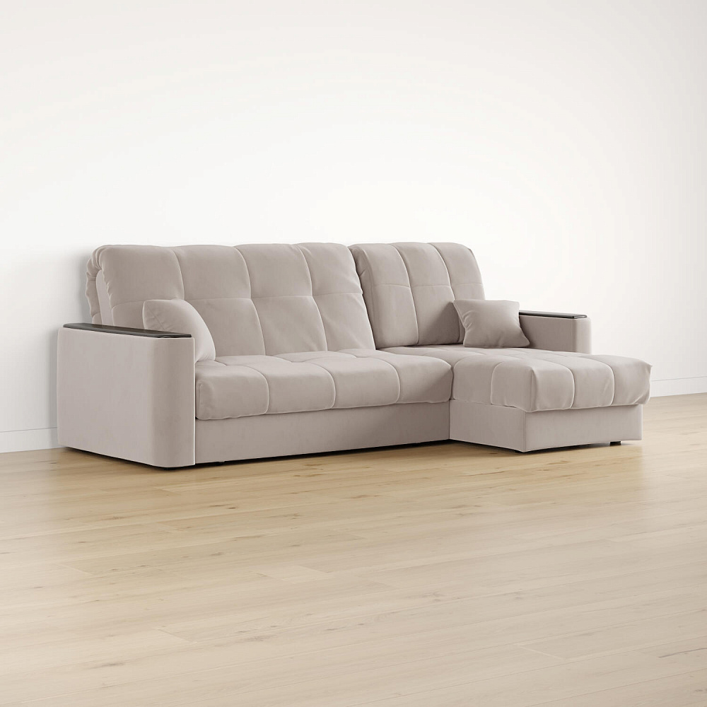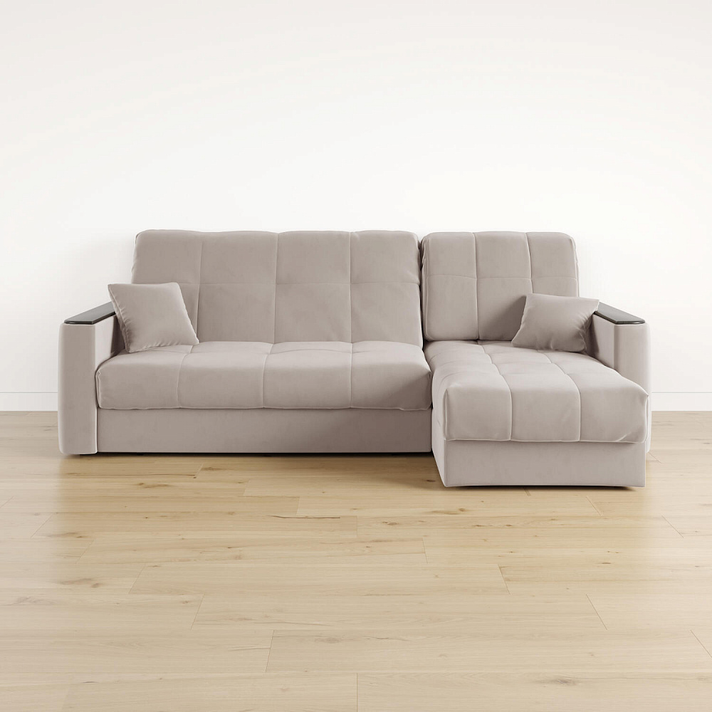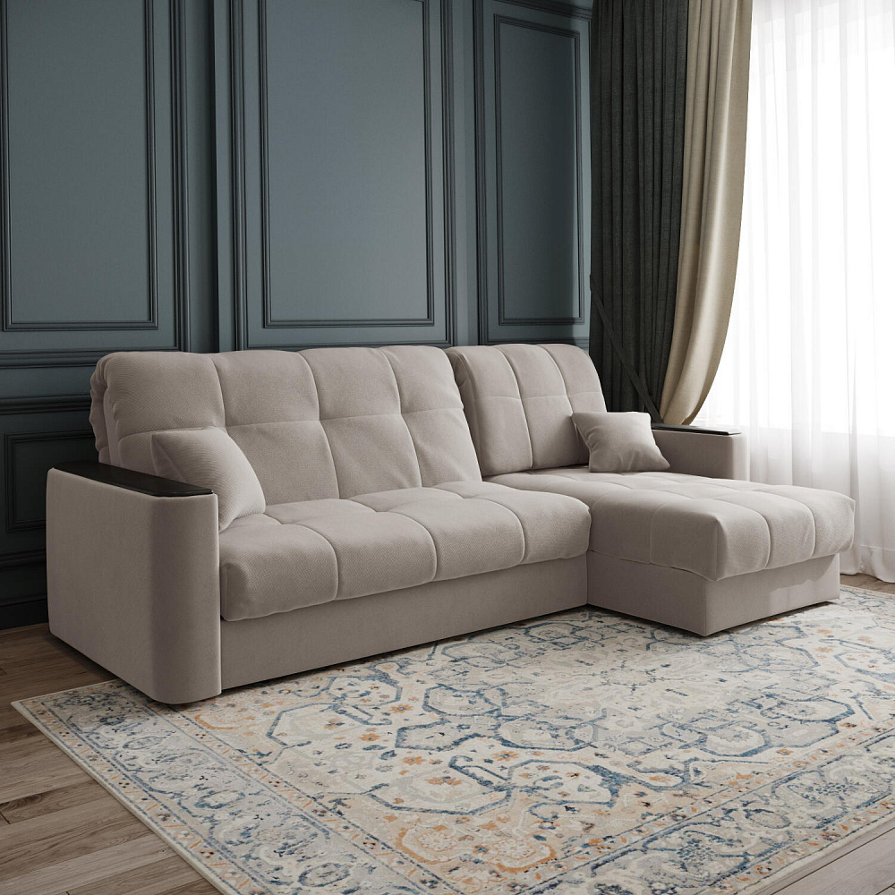 - Универсальный угол. Диван подстроится под условия помещения — оттоманка устанавливается как слева, так и справа.