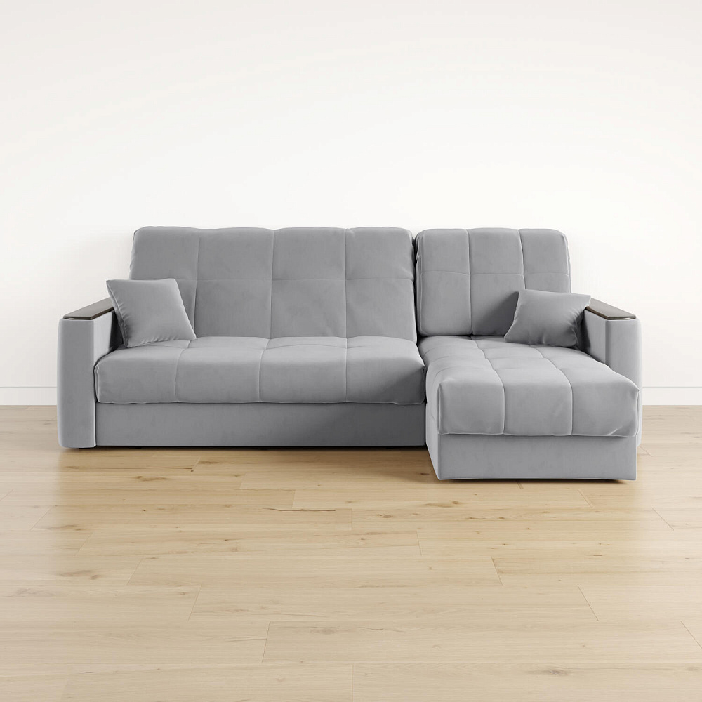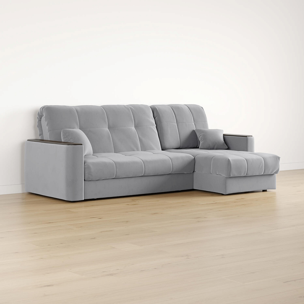 - Универсальный угол. Диван подстроится под условия помещения — оттоманка устанавливается как слева, так и справа.