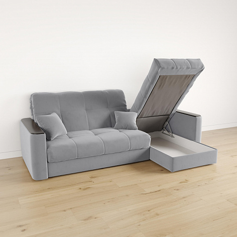 - Короб для белья. В оттоманке дивана скрыт просторный бельевой ящик, в котором можно разместить все необходимые постельные принадлежности.