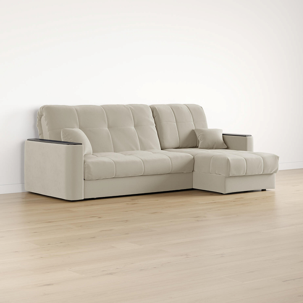Диван угловой «Камелот» — лучшее сочетание удобства, компактности и функциональности. Модель в лаконичном дизайне поможет оформить уютную и удобную зону для сна и отдыха в небольших гостиных в классическом стиле. Изюминкой модели являются деревянные накладки на подлокотниках, на которых можно разместить пульт от телевизора или чашку чая. Диван создаст в комнате комфортную обстановку и придаст ей неповторимый вид.