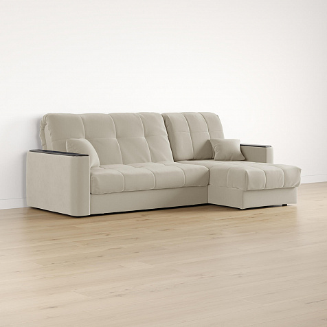 - Универсальный угол. Диван подстроится под условия помещения — оттоманка устанавливается как слева, так и справа.