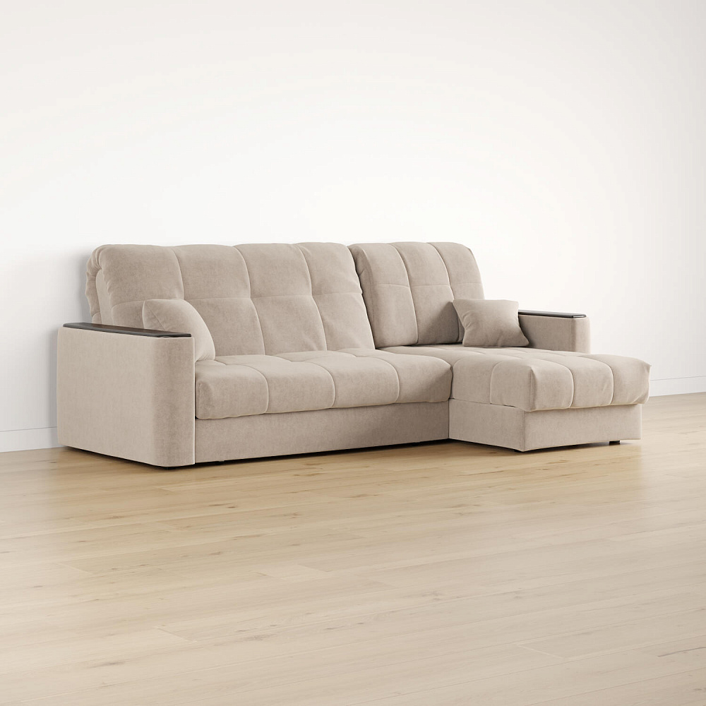 Диван угловой «Камелот» — лучшее сочетание удобства, компактности и функциональности. Модель в лаконичном дизайне поможет оформить уютную и удобную зону для сна и отдыха в небольших гостиных в классическом стиле. Изюминкой модели являются деревянные накладки на подлокотниках, на которых можно разместить пульт от телевизора или чашку чая. Диван создаст в комнате комфортную обстановку и придаст ей неповторимый вид.