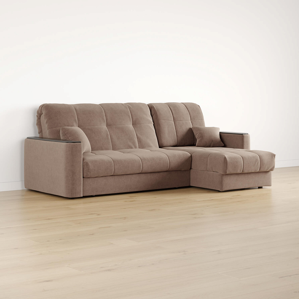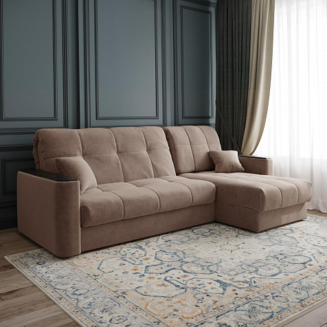 Диван угловой «Камелот» — лучшее сочетание удобства, компактности и функциональности. Модель в лаконичном дизайне поможет оформить уютную и удобную зону для сна и отдыха в небольших гостиных в классическом стиле. Изюминкой модели являются деревянные накладки на подлокотниках, на которых можно разместить пульт от телевизора или чашку чая. Диван создаст в комнате комфортную обстановку и придаст ей неповторимый вид.