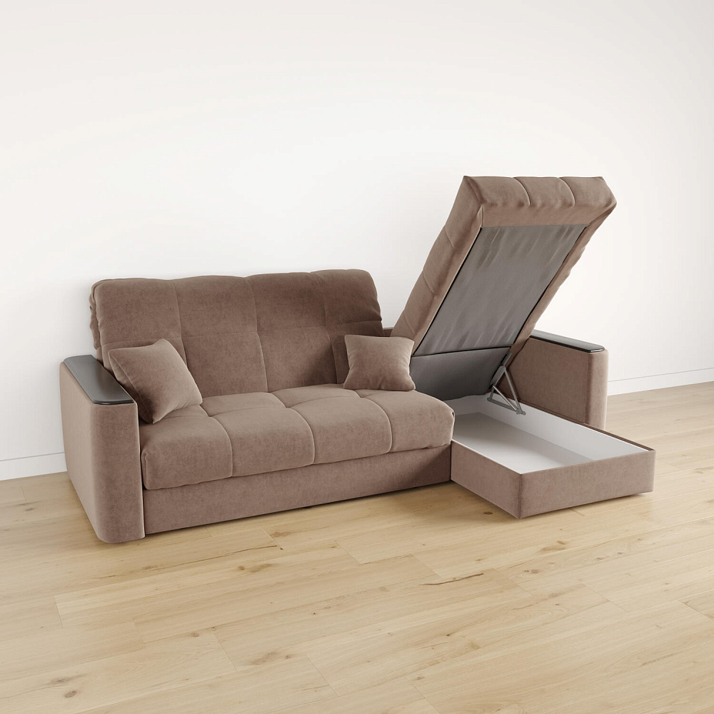 - Короб для белья. В оттоманке дивана скрыт просторный бельевой ящик, в котором можно разместить все необходимые постельные принадлежности.