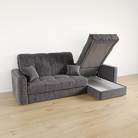 - Короб для белья. В оттоманке дивана скрыт просторный бельевой ящик, в котором можно разместить все необходимые постельные принадлежности.