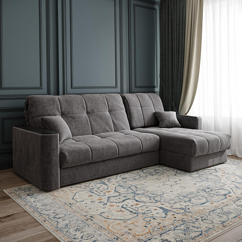 - Универсальный угол. Диван подстроится под условия помещения — оттоманка устанавливается как слева, так и справа.