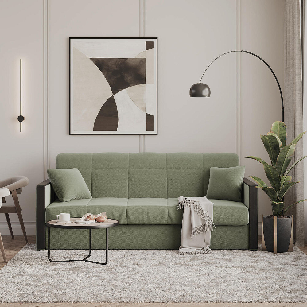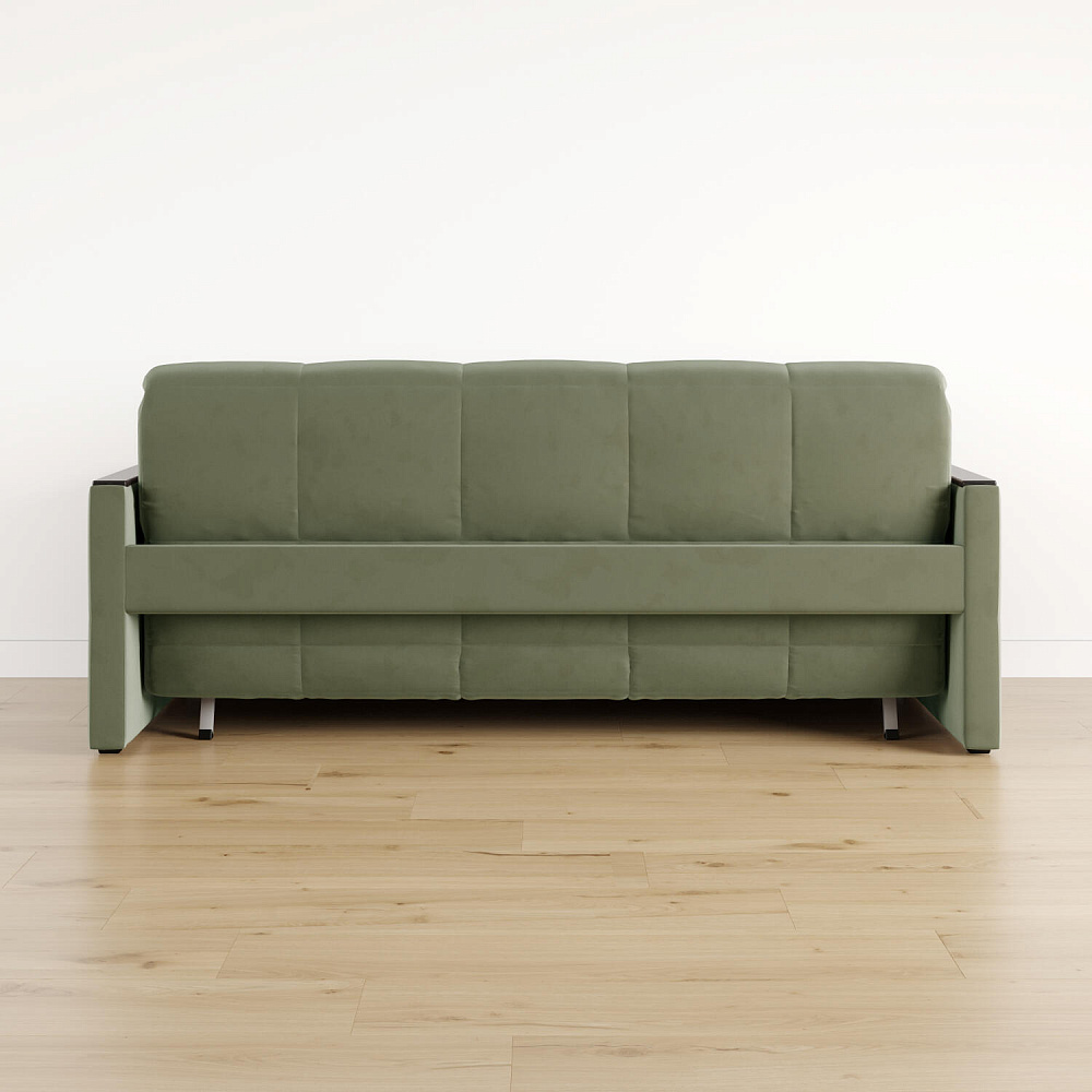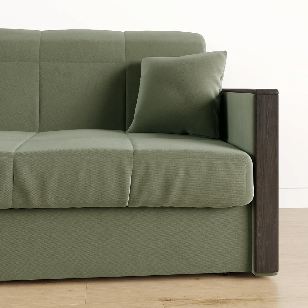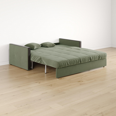 Механизм трансформации «Аккордеон». Чтобы разложить диван, необходимо приподнять сиденье и слегка потянуть на себя, далее диван разложится сам. Поверхность спального места ровная, без петель и швов, поэтому сон будет приятным и комфортным. Прорезиненные ролики защитят напольное покрытие от истирания.