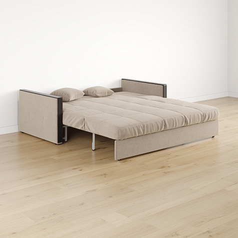 Механизм трансформации «Аккордеон». Чтобы разложить диван, необходимо приподнять сиденье и слегка потянуть на себя, далее диван разложится сам. Поверхность спального места ровная, без петель и швов, поэтому сон будет приятным и комфортным. Прорезиненные ролики защитят напольное покрытие от истирания.